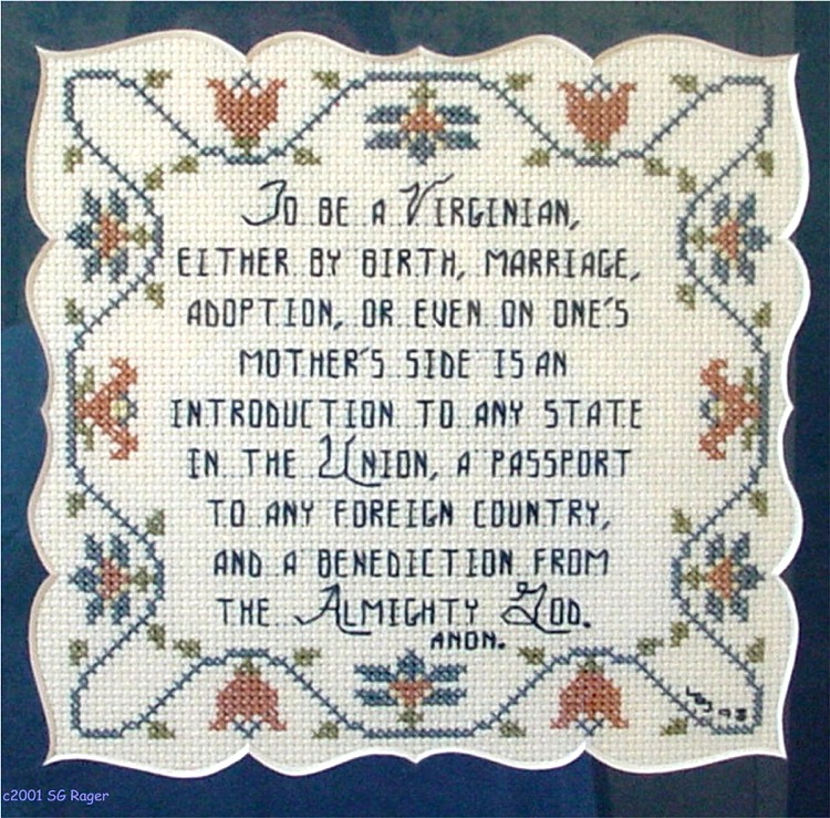 Don't Grow Up Too Quickly JFK Quote Roll on, thou deep and dark blue Ocean - roll! Virginia Sampler Note from the Rivah